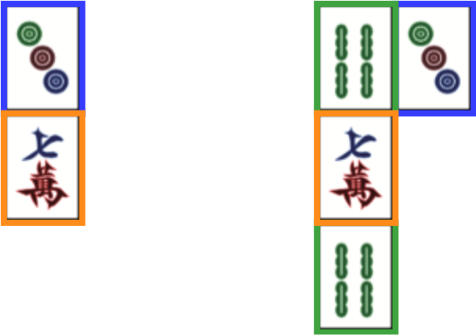 In this example, there are orange tiles, blue tiles and green tiles. By iterating in this manner, it is guaranteed that a solution exists when the board is completely generated.